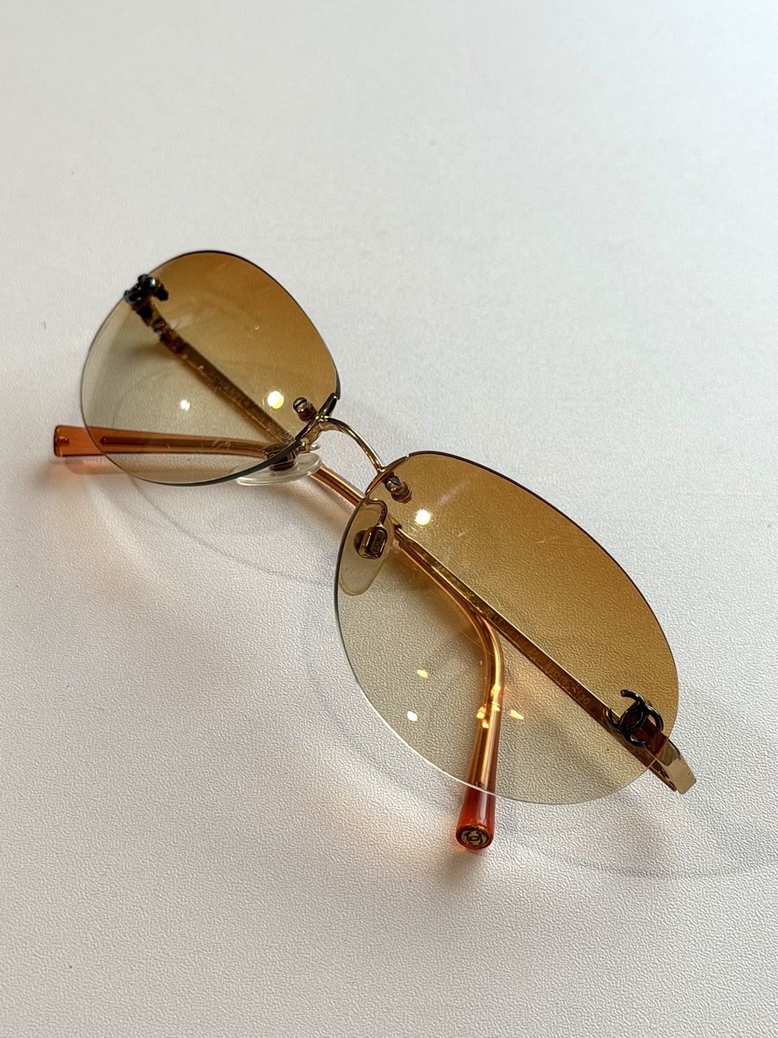 Be the first to review “Chanel Vintage Orange Oval Rimless Sunglasses”